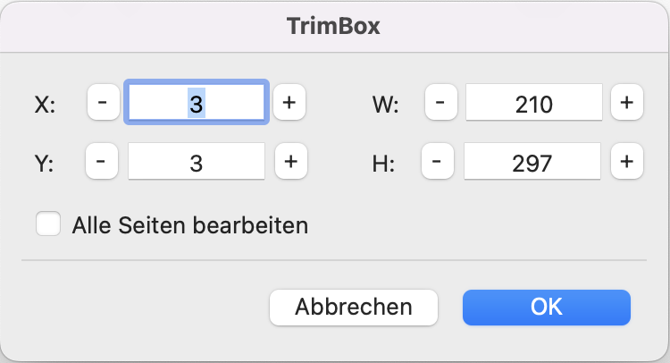 Auf TrimBox beschneiden, TrimBox bearbeiten |